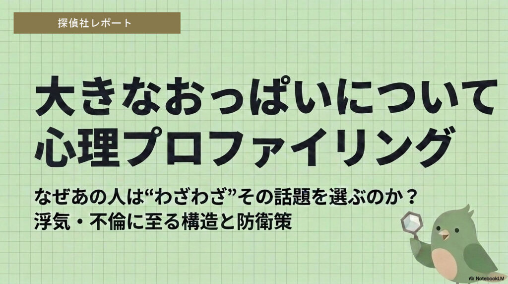 「大きなおっぱい」の話をしたがる人は、なぜ浮気に近づくのか。軽い下ネタから職場不倫が始まる構造とはあるのでしょうか?